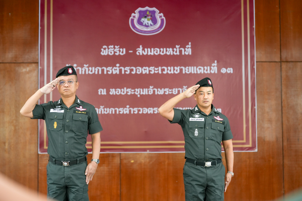 ที่ได้ดำรงตำแหน่งใหม่ เป็น รอง ผบก.ตชด.ภาค ๔ และ ว่าที่ พ.ต.อ.ธวัลธรณ์ พุฒิธนพิศุทธิ์ ผกก.บช.ตชด ที่ได้รับการแต่งตั้งมาเป็น ผกก.ตชด.๑๓