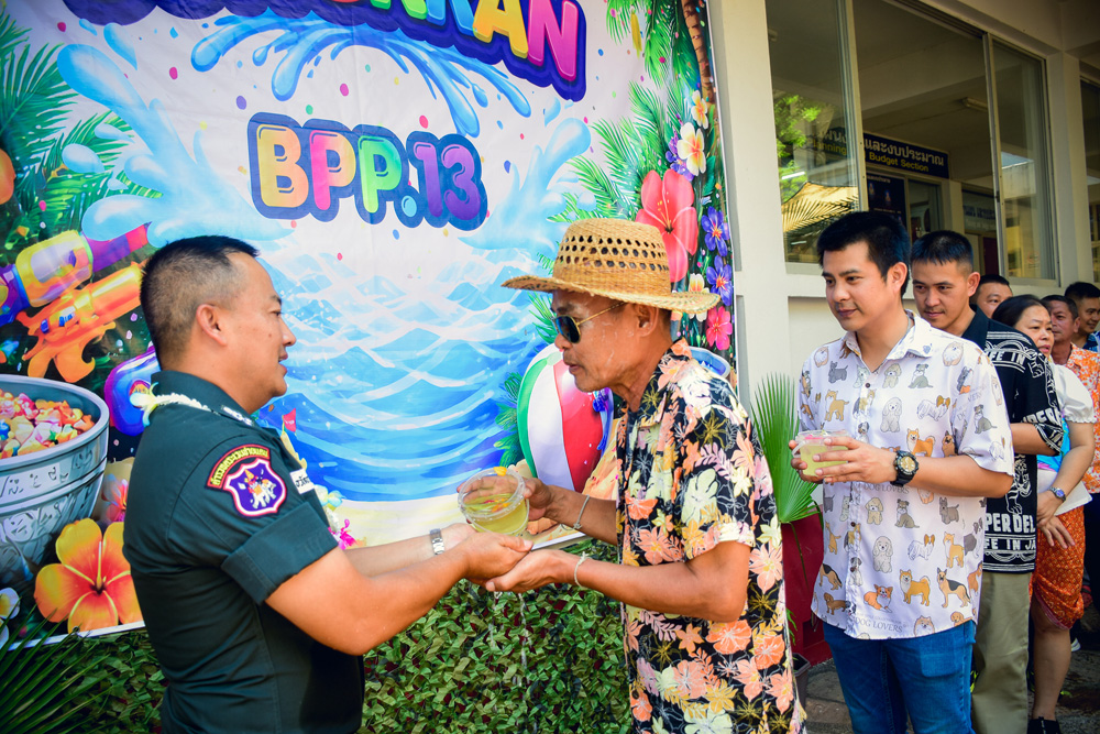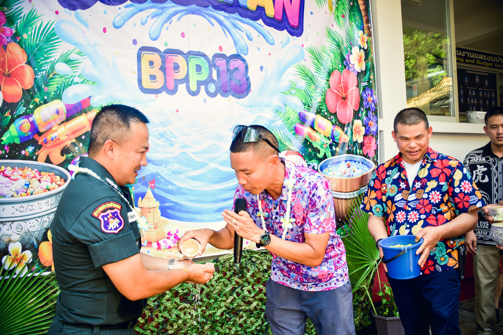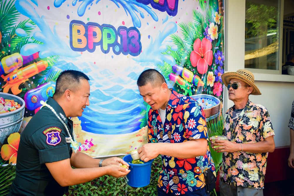 ได้ร่วมทำพิธีสรงน้ำ สักการะพระพุทธรูปประจำหน่วย และขอพรจากผู้บังคับบัญชา เนื่องในเทศกาลสงกรานต์ ประจำปี พ.ศ.๒๕๖๙ ณ กก.ตชด.๑๓ |