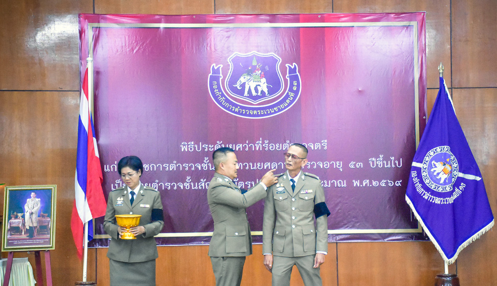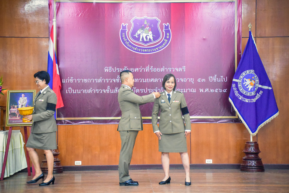 เมื่อ ๑๖ เม.ย.๖๙ เวลา ๐๙.๐๐ น. ว่าที่ พ.ต.อ.ธวัลธรณ์ พุฒิธนพิศุทธิ์ ผกก.ตชด.๑๓ เป็นประธาน พิธีประดับยศว่าที่ร้อยตำรวจตรี