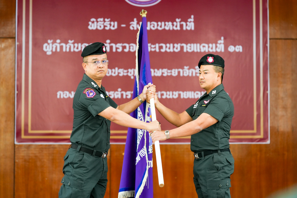 เมื่อ ๒ ธ.ค.๖๘ เวลา ๑๐.๐๐ น. กก.ตชด.๑๓ ทำพิธี ส่ง - รับมอบหน้าที่และการบังคับบัญชาในตำแหน่ง ผกก.ตชด.๑๓