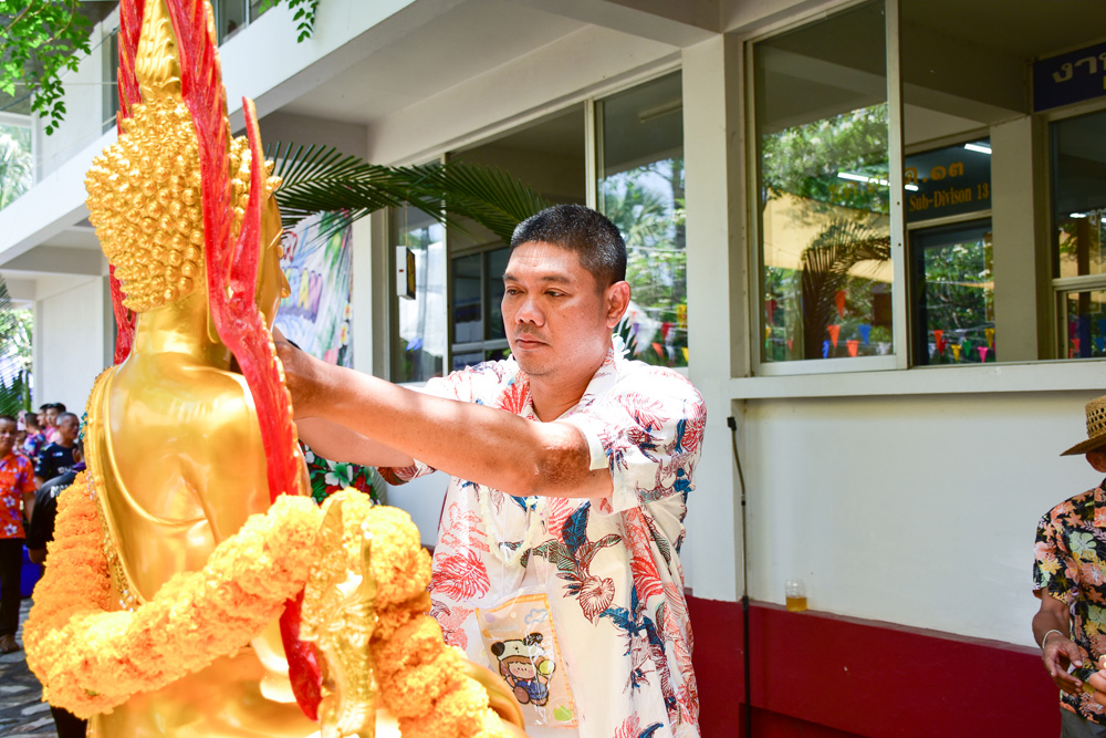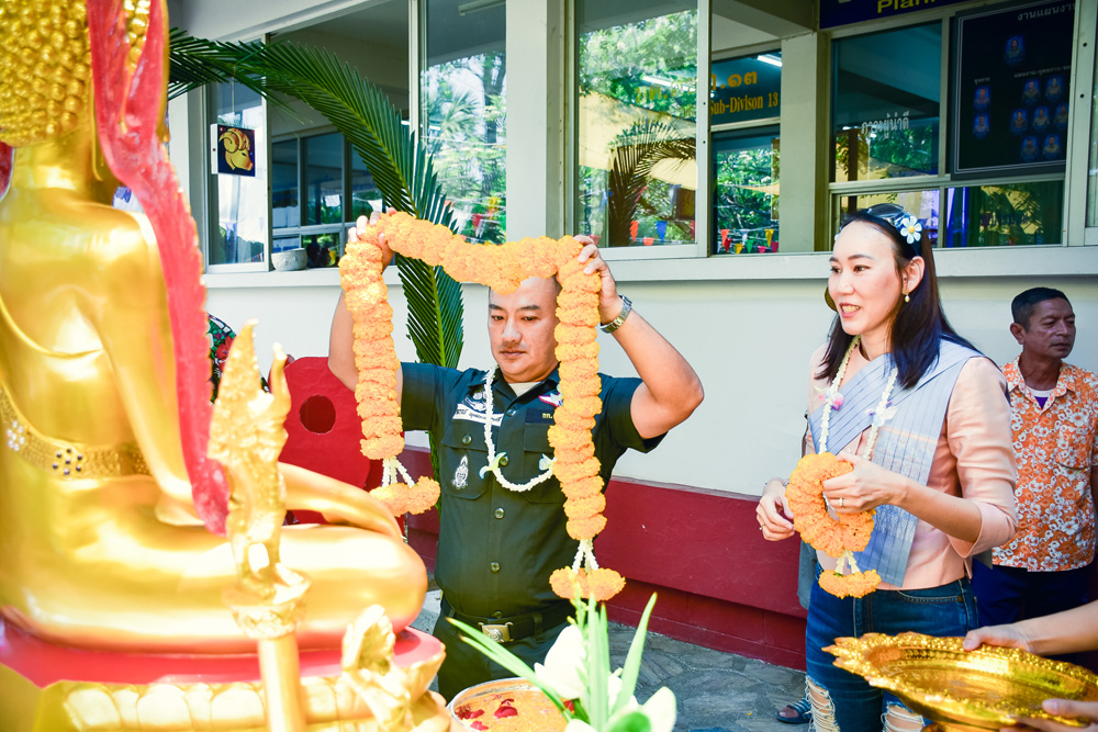 ได้ร่วมทำพิธีสรงน้ำ สักการะพระพุทธรูปประจำหน่วย และขอพรจากผู้บังคับบัญชา เนื่องในเทศกาลสงกรานต์ ประจำปี พ.ศ.๒๕๖๙ ณ กก.ตชด.๑๓ |
